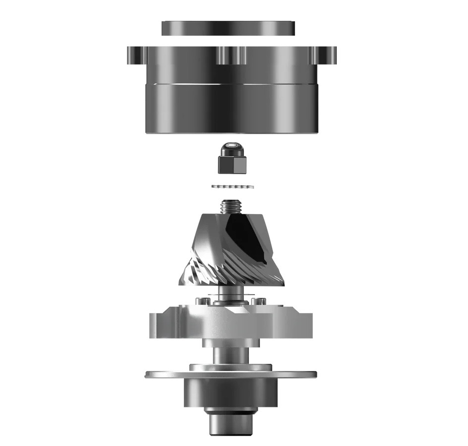 • خاصیت ضدالکتریسته ساکن: برای کاهش چسبندگی پودر قهوه تمام قطعات داخلی آسیاب از جنس فلز هستند که با پوشش ضد الکتریسیته ساکن (Anti-Static) پوشانده شده‌اند تا از ایجاد بار الکتریکی و چسبیدن پودر قهوه به بدنه جلوگیری شود. از محفظه دانه‌ها (هاپر) تا فنجان دوزینگ، قهوه فقط با فلز در تماس است، که به کاهش پخش شدن پودر و حفظ تازگی و یکنواختی آسیاب کمک می‌کند.