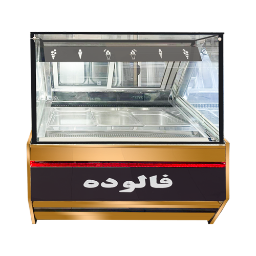 طراحی ویترینی با شیشه نشکن یکی از نقاط قوت تاپینگ بستنی فریزر فالوده کیاکو محسوب می‌شود. مشتریان می‌توانند به‌راحتی تمام محتویات داخل لگن‌ها را ببینند و همین موضوع جذابیت بصری محصولات را دوچندان می‌کند. درب‌های پشت دستگاه به صورت کشویی باز می‌شوند تا هم دسترسی کاربر آسان باشد و هم سرویس‌دهی به مشتری سریع‌تر انجام شود. یکی دیگر از ویژگی‌هایی که به این دستگاه جذابیت بیشتری می‌بخشد، نورپردازی LED داخلی است. این روشنایی به شکلی هوشمندانه طراحی شده تا جلوه‌ای درخشان به فالوده و بستنی بدهد و نگاه هر مشتری را به سمت ویترین جلب کند. در محیط‌هایی مثل بستنی‌فروشی، کافه یا شیرینی‌فروشی، همین جزئیات کوچک می‌تواند در جذب مشتریان بیشتر نقش تعیین‌کننده‌ای داشته باشد.