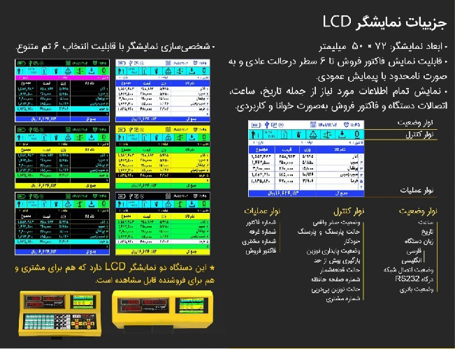 اولین و بارزترین ویژگی این ترازوی فروشگاهی، بهرهگیری از نمایشگر تمام رنگی TFT LCD دوطرفه است. این نمایشگر ۳.۸ اینچی با رزولوشن ۳۲۰×۴۸۰ پیکسل، تجربهای بصری شبیه به تلفنهای هوشمند را برای اپراتور فراهم میکند. با وجود ۱۲ تم رنگی برای پسزمینه، کاربر میتواند محیط کاربری را مطابق با سلیقه یا نور محیط تنظیم کند. نمایش همزمان نام کالا، وزن، قیمت واحد، قیمت کل، شماره فاکتور، وضعیت اتصال به شبکه (WIFI) و حتی ساعت و تاریخ، باعث میشود احتمال خطا در ثبت سفارش به صفر برسد. از طرف دیگر، نمایشگر دوطرفه به مشتری اجازه میدهد تا ریز فاکتور خرید خود را به صورت لحظهای مشاهده کند که این موضوع نقش بسزایی در جلب اطمینان مشتری دارد.