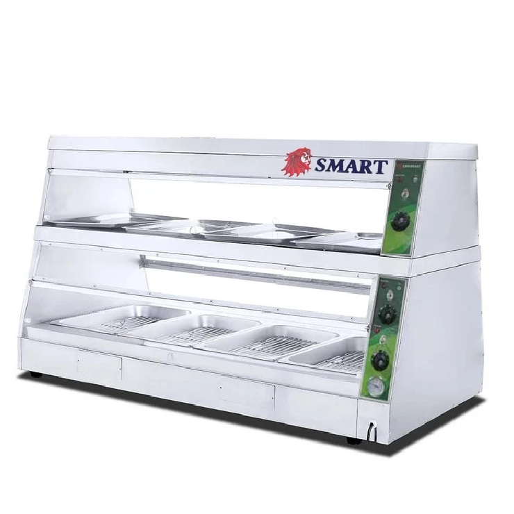 اما آنچه این مدل را متمایزتر میسازد، امکان تنظیم دمای هر طبقه به صورت مجزاست. این قابلیت به شما این اجازه را میدهد که چندین محصول مختلف را همزمان در دستگاه قرار دهید، بدون اینکه دمای یک طبقه روی طبقه دیگر تأثیر بگذارد. به عنوان مثال، میتوانید در یک طبقه شیرینی گرم سرو کنید و در طبقه دیگر ساندویچ یا غذاهای گرم دیگری را نگهداری کنید. این ویژگی در عمل، انعطاف و کارایی دستگاه را به سطحی بالاتر ارتقا میدهد.