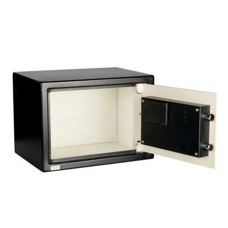 در ساختار سیف باکس PM25 از فولاد با ضخامت ورق ۴ میلیمتر برای در و ۲ میلیمتر برای بدنه استفاده شده است. این اختلاف ضخامت آگاهانه انتخاب شده تا در ضمن تأمین استحکام لازم برای قسمت حساس در، وزن کلی دستگاه در حد معقول باقی بماند. با وزن حدود ۱۰.۵ کیلوگرم و ابعاد بیرونی ۲۵×۳۶×۲۵ سانتیمتر، این مدل نه سنگین است و نه سبک، بلکه بهگونهای طراحی شده که در صورت نصب ثابت، جابهجایی آن بدون ابزار یا اطلاع کاربر تقریباً غیرممکن باشد. در همین راستا، چهار سوراخ در کف و دیوارهها تعبیه شده تا کاربر بتواند صندوق را به سطح میز، دیوار یا کف متصل کند و از هرگونه حرکت ناگهانی جلوگیری شود.