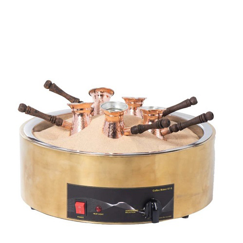 یکی از ویژگی‌های مهم قهوه ترک ساز شنی گرد وجود درجه تنظیم دماست. این قابلیت به شما امکان می‌دهد حرارت شن‌ها را تحت کنترل داشته باشید تا متناسب با تعداد جَزوه‌ها یا غلظت دلخواهتان دما را تغییر دهید. کنترل دقیق به شما کمک می‌کند هر بار قهوه‌ای با کیفیت یکنواخت و حرفه‌ای تهیه کنید؛ چه برای مشتریان کافه شلوغ باشد، چه برای مهمانان یک دورهمی دوستانه. المنت‌های به‌کاررفته در این مدل با طراحی استاندارد و ایمن تولید شده‌اند تا خطراتی مثل داغ شدن بیش‌ازحد، جرقه یا آسیب به بدنه به حداقل برسد. این موضوع کار با دستگاه را ایمن و مطمئن می‌کند و طول عمر آن را نیز افزایش می‌دهد. از طرفی مصرف برق این دستگاه به نسبت توان بالای آن بهینه است و باعث صرفه‌جویی در هزینه‌های انرژی می‌شود.