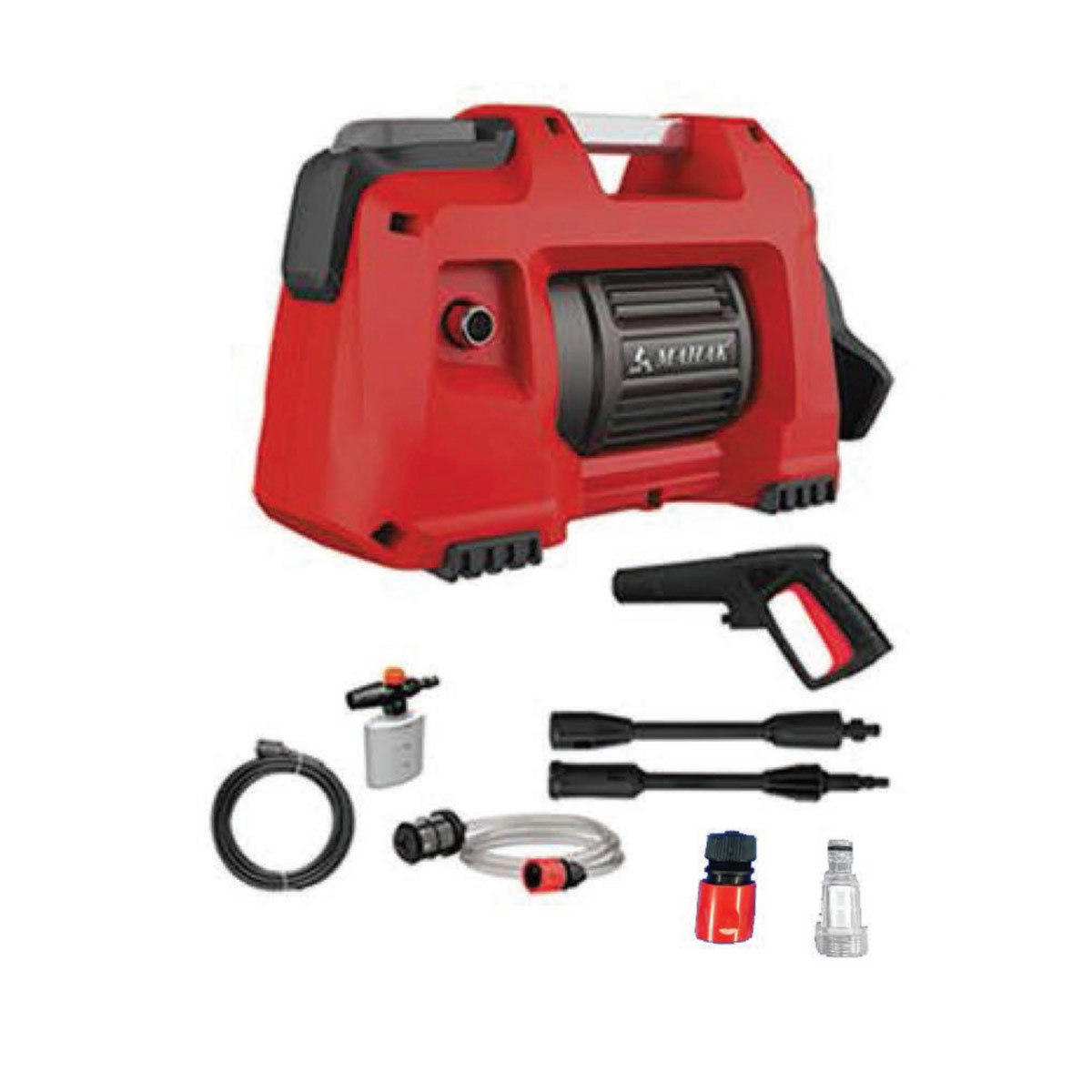 توان موتور این دستگاه 1400 وات است و از نوع موتور یونیورسال استفاده میکند. انتخاب موتور یونیورسال در این رده، بهمعنای دستیابی به سرعت عملکرد مناسب در کنار وزن کمتر و ابعاد فشردهتر دستگاه است. این توان به کارواش اجازه میدهد فشار کاری تا 110 بار ایجاد کند؛ فشاری که برای شستوشوی سطوح مختلف مانند کف کارگاه، تجهیزات کارگاهی و صنعتی سبک، بدنۀ ماشینآلات، محوطهها و حتی خودروها کاملاً کاربردی و کافی است. کارواش 110 بار محک در همین نقطه نشان میدهد که برای مصرف حرفهای طراحی شده، اما وارد حوزۀ فشارهای بیشازحد و غیرضروری نمیشود.